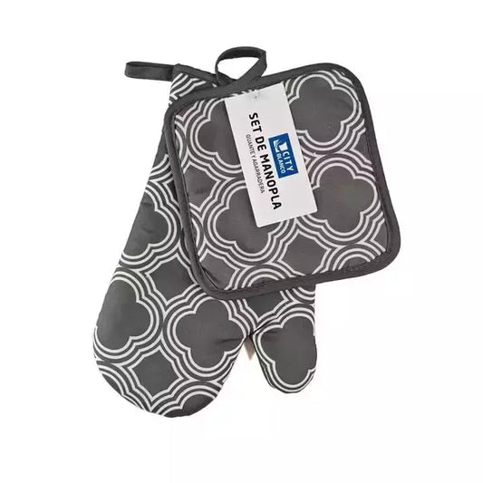 Set Manopla y Agarradera Estampada - City Blanco